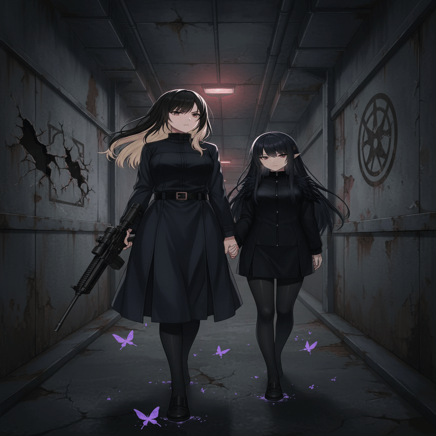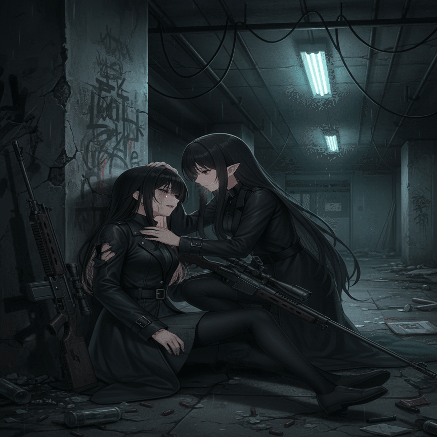 廃線となった地下鉄の駅 新宿の地下深く、廃線となった地下鉄の駅。黒崎夜音は、負傷した左肩の痛みに耐えながら、闇音の隣で薄らと意識を保っていた。闇音は、静かに夜音の額に冷たい手を当てている。「くそっ、まさか白石希にあそこまでやられるとは…!それに、あの青のサイボーグ、蒼井凛の防御も厄介だったわ」闇音が口元を歪めた。夜音は、壁に立てかけてあった『シャドウリーパー』を強く握りしめた。その瞳には、激しい憎悪が宿っている。「白石希…あの女だけは、絶対に許さない。故郷の森を焼いたあの組織の狗め…!」闇音は、夜音の背中をそっと撫でた。「夜音。今は、次の作戦を考える時。感情的になっても、状況は好転しないわ」夜音は大きく深呼吸をし、感情を抑え込んだ。「分かっている…!だが、今回の戦いで、あの白石が私たちを狙っていることを確信した。あの組織が…私たちの故郷を奪った『実験』の関与者たちが、この『クロスカラーウォーズ』の裏にいる」夜音の指先が、ディスプレイに映し出された謎の組織の紋章をなぞる。「あの組織は、自然・生物・技術の融合実験を進めている。芹歌の変身能力も、魅音の毒と幻影も、そして…闇音、あなた自身も、その産物だと…私たちは突き止めた」闇音は静かに頷いた。「私の中に流れる『闇』の力は、生まれつきのものではない。あの森…私たちの故郷が焼かれた日、同時に私の身体も変質した。あの組織の実験によって」夜音の故郷の森が焼かれた事件は、彼女たちの人生を大きく変えた。そして、その裏には、この「クロスカラーウォーズ」を操る謎の組織の存在があることを、二人は確信していた。「最終フェーズ…次は、必ずあの組織の尻尾を掴む。そして、白石希…あの女から、真実を奪い取る」夜音の瞳が、暗闇の中で鋭く光った。『闇夜に消える、死の使者』。彼らは、復讐の刃を研ぎ澄まし、次の舞台で、真実を隠蔽する者たちに迫ろうとしていた。赤チームの隠れ家
