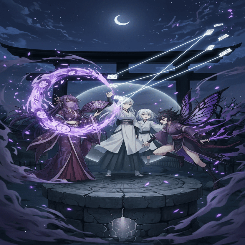 - 青(葵): 水鏡の予言で、すべての攻撃の時間軸と霊力密度を監視し、「誤差ゼロ」の完璧な連携を指示する。