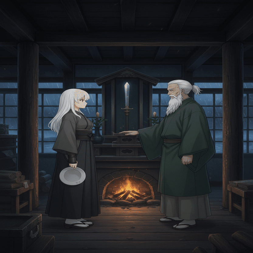 白石咲耶は、庵の祭壇の前で師と向かい合っていた。三日前の夜、姉あかりが都の闇に囚われ、聖なる武器「シルバーランス」が穢れる幻視を見て以来、咲耶の心は嵐の中にある。