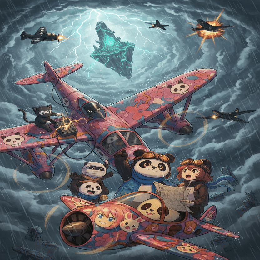 「古代の空の民は、この雷雲を避けるのではなく、逆に利用する『フライトパス』を持っていた。このマップがその手がかりよ」マミー・パンダは包帯の下から真剣な眼差しを向けた。