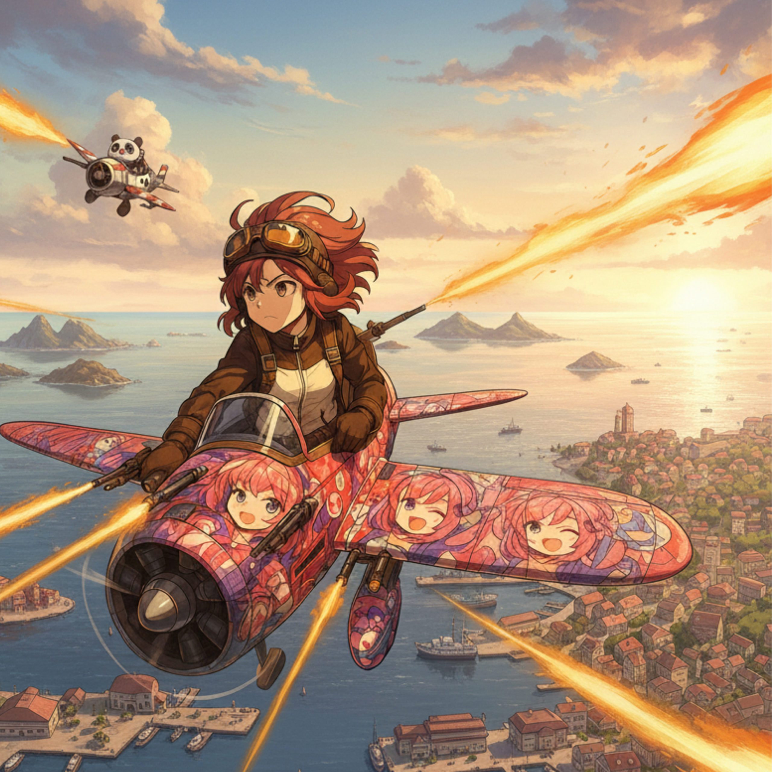 エース・パンダは、愛機「スカイ・パンダ号」のコックピットで静かに息を吸い込んだ。窓の外では、空の祭典「天空グランプリ」の熱狂的なアナウンスが響いている。ツインプロペラ式の機体は、カラフルなパンダのイラストとペイントで装飾されているが、その内部は高性能のAIと隠されたブースト機能を備えた、レース仕様のモンスターだ。