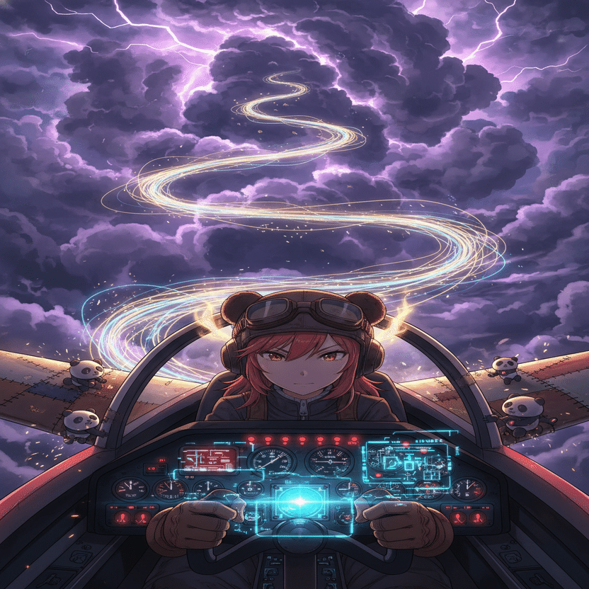 「アオイ、ナビは私が引き継ぐわ! そこを右へ……ううん、嵐の目に向かって最短で突っ込んで! そこにスカイコアのエネルギーが吹き溜まっている! そこに乗れば、一気に雲海の上まで跳べる!」 「ええっ!? そんなの自殺行為だよ! 渦の中心は真空に近いんだよ!」 「私を信じて! この機体には、その空を征く資格があるの!」