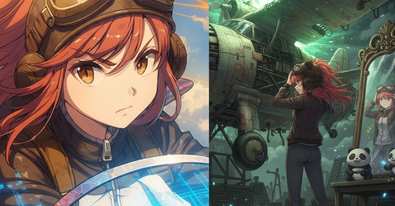 若き女性パイロット――レーナは、赤茶色の短い髪をかき上げ、使い込まれたゴーグルを額に押し上げた。彼女の鋭い瞳には、父レナートから受け継いだ空への情熱と、それ以上に深い、凍てついた決意が宿っている。彼女の髪の間からは、丸く愛らしいパンダの耳が、周囲の音を拾うようにぴくりと動く。それは彼女たち姉妹が、かつて空を統べたといわれる伝説の「パンダ帝国」の微かな血筋を引いている証でもあった。だが、現代の人間が支配するこの空において、その耳は高貴な誇りなどではなく、忌むべき過去、あるいは差別と好奇の目に晒されるための標的(ターゲット)でしかなかった。世界の浮力を司るエネルギーを独占する支配層『スカイ・キーパーズ』にとって、帝国の血を引く者は、その利権を脅かす「失われた技術の正統な継承者」という名の、排除すべきノイズでしかなかった。